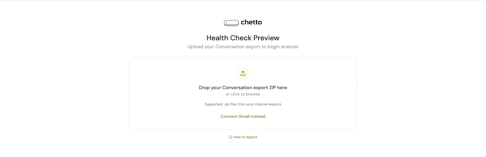 Connect your Gmail to run a Health Check on your email threads — no exports needed.