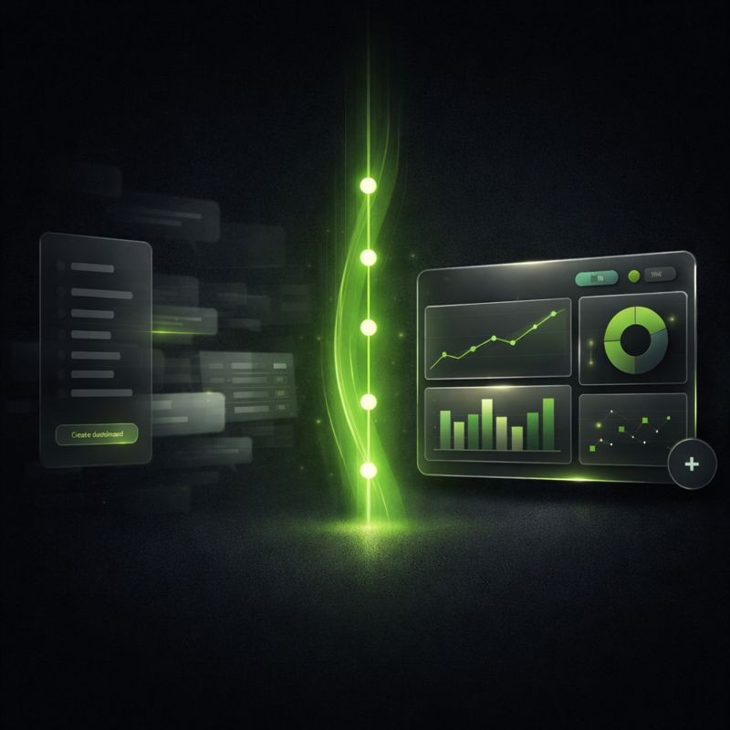 In a few clicks, you can create dashboards, explore your dataset, and build charts to track patterns such as volume, trends, category splits, and performance over time.