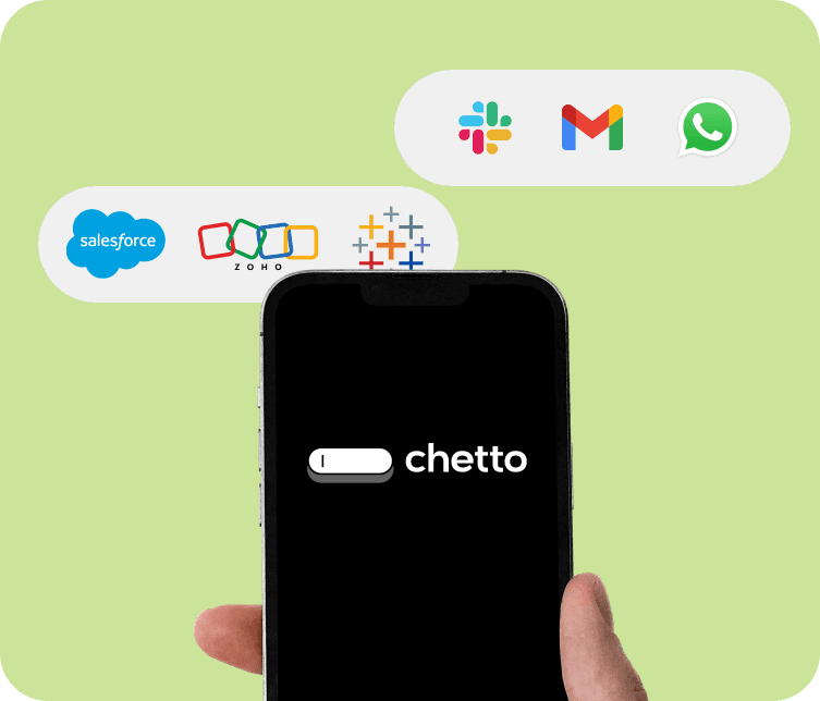 Chetto connects to your systems through secure webhooks and APIs, ensuring every message, task, and signal flows directly into your existing tools.